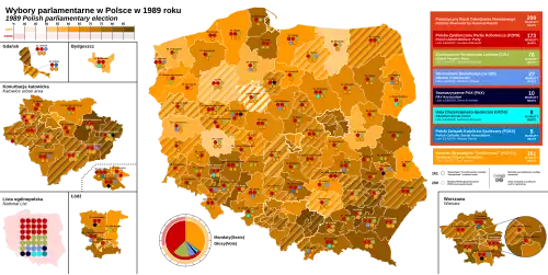 - ^ a b c "Obwieszczenie Państwowej Komisji Wyborczej z dnia 8 czerwca 1989 r. o wynikach głosowania i wynikach wyborów do Sejmu Polskiej Rzeczypospolitej Ludowej przeprowadzonych dnia 4 czerwca 1989 r." isap.sejm.gov.pl. Retrieved 2019-11-20.