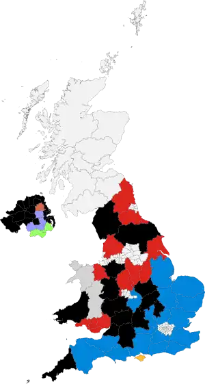 All 39 non-metropolitan counties, 1 sui generis authority, all 26 Northern Irish districts and all 8 Welsh counties | |||||||||||||||||||||||||||||