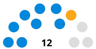 Party | Seats | Gains | Losses | Net gain/loss | Seats % | Votes % | Votes | +/− | |