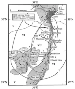 - ^ Hussein, H.M.; Korrat I.M. & Abdl Fattah A.K. (1996). "The October 12, 1992 Cairo earthquake a complex multiple shock". Bulletin of the International Institute of Seismology and Earthquake Engineering. 30: 9–21. Archived from the original on 4 September 2012. Retrieved 9 June 2010.