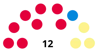 Party | Seats | Gains | Losses | Net gain/loss | Seats % | Votes % | Votes | +/− | |