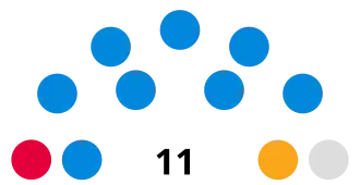 Party | Seats | Gains | Losses | Net gain/loss | Seats % | Votes % | Votes | +/− | |