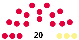Party | Seats | Gains | Losses | Net gain/loss | Seats % | Votes % | Votes | +/− | |