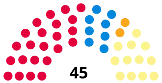 Party | Seats | Gains | Losses | Net gain/loss | Seats % | Votes % | Votes | +/− | |