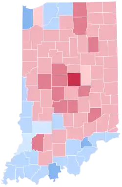 Vanderburgh | 30,271 | 39.39% | 33,799 | 43.99% | 12,513 | 16.28% | 257 | 0.33% | -3,528 | -4.60% | 76,840 |