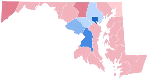 Anne Arundel | 68,629 | 36.97% | 81,467 | 43.89% | 35,191 | 18.96% | 347 | 0.19% | -12,838 | -6.92% | 185,634 |