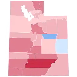 2. ^ Because Perot finished ahead of Clinton in Utah as a whole, all margins given are Bush minus Perot unless stated in the total for the county in question.