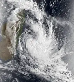 While moving across the island, Hollanda produced wind gusts of 216 km/h (134 mph) in the capital city of Port Louis, while heavy rainfall reached 711 mm (28.0 in) in Mare aux Vacoas.[4] The cyclone destroyed or severely damaged 450 houses, which left at least 1,500 people homeless.[24] High winds downed about 30% of the island's trees and left half of the island without power.[25] Hollanda also caused severe crop damage; nearly half of the island's sugar crop was destroyed, which necessitated for the government to assist in replanting efforts.[24] Hollanda killed two people and caused $135 million in damage on Mauritius.[24][26] The highest rainfall from the cyclone fell on Réunion, with 741 mm (29.2 in) recorded at Grand Coude. On that island, there was also damage to crops and power lines.[4]