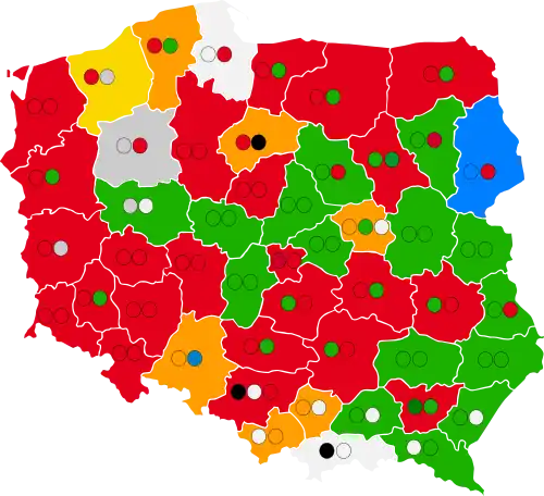 Voivodeship | Total seats | Seats won | ||||||