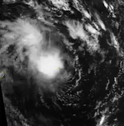 On October 1, an area of convection developed about 500 km (310 mi) Seychelles at a low latitude. Moving southwestward, the system organized into Tropical Disturbance A1 on October 2, the first of the season. A small central dense overcast subsequently developed over the circulation. A ridge to the south steered the disturbance westward, bringing it just north of the Farquhar Group.[1] On October 5, the disturbance intensified into a tropical depression, reaching peak winds of 55 km/h (35 mph).[23] Subsequently, increased wind shear dissipated the convection as the rapidly weakening depression passed north of Madagascar. On October 7, the circulation dissipated. There were two other disturbances between October and late November.[1]