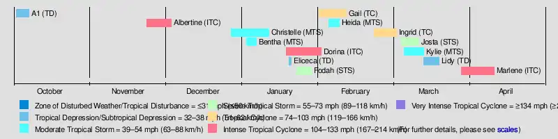 - ^ a b Kenneth R. Knapp; Michael C. Kruk; David H. Levinson; Howard J. Diamond; Charles J. Neumann (2010). 1995 Kylie (1995064S13055). The International Best Track Archive for Climate Stewardship (IBTrACS): Unifying tropical cyclone best track data (Report). Bulletin of the American Meteorological Society. Archived from the original on 2016-03-05. Retrieved 2014-05-13.
