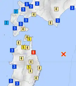 - ^ a b Disaster Prevention Aomori Prefecture. "Summary of earthquake" (in Japanese). Archived from the original on 2012-01-31. Retrieved 13 July 2011.