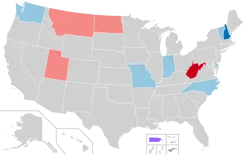 Going into the elections, Republicans held the governorships of thirty-two states, Democrats held those of seventeen states, all territories, and the Mayorship of the District of Columbia, and one Governor was a member of neither party. Republicans won in West Virginia, but this was countered by a Democratic victory in New Hampshire. Thus, there was no net change in the balance of power.