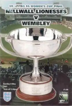 The 1997 FA Women's Cup Final was the 27th final of the FA Women's Cup, England's primary cup competition for women's football teams. The showpiece event was the fourth to be played directly under the auspices of the Football Association (FA) and was known as the UK Living FA Women's Cup Final for sponsorship reasons. Millwall Lionesses and Wembley contested the match at West Ham United's Upton Park in London on 4 May 1997. Millwall Lionesses made their second final appearance, after winning the trophy in 1991 with a 1–0 win over Doncaster Belles at Prenton Park. Wembley appeared in the final for the first time, having won the previous season's FA Women's Premier League Cup competition.[1]