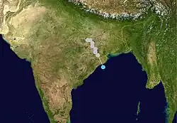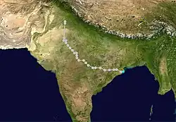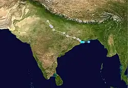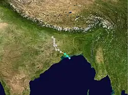 On September 19, a tropical depression formed from an area of disturbed weather in the western Bay of Bengal. It drifted northwestward towards the Indian coastline, but a mid-latitude trough pulled it northeastward, The depression strengthened to a tropical storm on the 24th, and it reached cyclone strength while paralleling the Indian coastline on 26th. It made landfall in Bangladesh on the 27th, and dissipated shortly thereafter. Tropical Cyclone 2B was responsible for 51 fatalities and left an additional 137 people missing.[3]