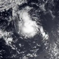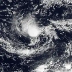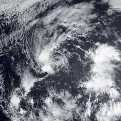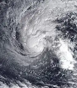 Tropical storm Oliwa began as a tropical disturbance that had meandered south of Johnston Atoll. It organized into Tropical Depression Two-C on September 2. Later that day, it was upgraded to Tropical Storm Oliwa (Hawaiian for Oliver) as it slowly moved towards the west.[4] It crossed the dateline late on September 3 and entered the Joint Typhoon Warning Center's Area of Responsibility.[36] Oliwa passed south of Wake Island on September 6, where it caused heavy rains but no damage. On September 7, Oliwa started a period of rapid strengthening, becoming a typhoon on September 8 and a Super Typhoon eight hours later. Oliwa stayed at that intensity for over two days. While still a strong typhoon, Oliwa passed near the Northern Marianas Islands. It then started weakening as it curved towards Japan. It made landfall as a minimal typhoon September 16. It quickly dissipated later that same day.[37] Typhoon Oliwa caused 12 fatalities and left 30,000 people homeless. Damage totaled to 4.36 billion yen ($50.1 million USD).[38][39]