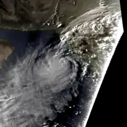 Continuing on a northeasterly track, BOB 01 gradually intensified as it neared Bangladesh, strengthened into a cyclonic storm twelve hours later.[14] Early on May 20, BOB 01 reached its peak intensity as a severe cyclonic storm with winds of 110 km/h (68 mph) and a barometric pressure of 972 mbar (hPa).[15] The JTWC assessed the storm to have peaked with winds of 130 km/h (81 mph), equivalent to a Category 1 hurricane on the Saffir–Simpson Hurricane Scale.[4] An eye developed and the system made landfall several hours later near Chittagong.[14] After making landfall, the storm quickly weakened,[14] dissipating later that day.[4]