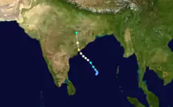 - ^ a b c d e f g h i j "IMD Best Tracks Data ( 1990 - 2008 )". India Meteorological Department. 2009. Archived from the original on November 16, 2009. Retrieved July 16, 2009.