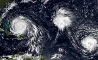 Overall, the season's activity was reflected with a high cumulative accumulated cyclone energy (ACE) rating of 177.[21] ACE is, broadly speaking, a measure of the power of the hurricane multiplied by the length of time it existed, so storms that last a long time, as well as particularly strong hurricanes, have high ACEs. It is only calculated for full advisories on tropical systems at or exceeding 34 knots (39 mph; 63 km/h) or tropical storm strength.[22]