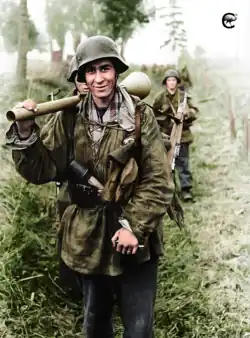 Soldiers of the Hermann Göring Division used civilians as human shields in front of its tanks while clearing barricades during the Warsaw Uprising.[30][2] Around 800 soldiers from the division took part in fighting during the August–October 1944 Warsaw Uprising in the Wola district, where mass executions of civilians occurred in connection with Hitler's orders to destroy the city.[3] Units of the division were also involved in the excesses committed in the Dutch city of Putten, also called the Putten raid. The units were: