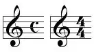 4, or "common time", today. When cut through by a vertical line "", it means 2