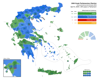 Parliamentary elections were held in Greece on 9 April 2000.[1] The ruling PASOK of Prime Minister Costas Simitis was narrowly re-elected, defeating the conservative New Democracy party. Simitis formed his third cabinet.