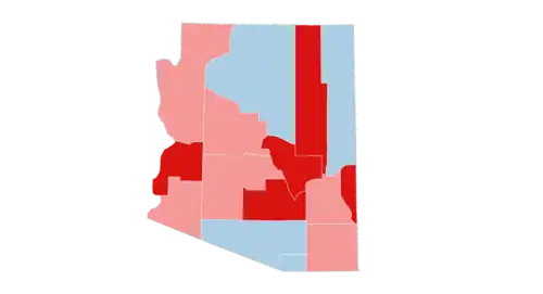 Arizona was won by Governor George W. Bush by a 6.3 point margin of victory. Ralph Nader received 3%, whilst all of the other candidates received a combined 1%. Pre-election polling showed that Bush had a solid lead over Gore.[1] Bush won all the congressional districts, except Arizona's 2nd congressional district. The key for Bush's victory was Maricopa County, which has by far the highest population in the state. After breaking the longest Republican streak in the last election, last voting Democratic in 1948 prior to 1996, Arizona made a return to the Republican column in 2000. Bush made history by winning Greenlee County, the first Republican presidential candidate to ever do so.[2] This thinly populated working class county, which has been dependent on copper mining as the basis for its economy, had previously voted Democratic in every election since Arizona achieved statehood in 1912, but has not done so since.