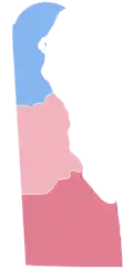 Due to the state's low population, only 1 congressional district, Delaware's at-large congressional district is allocated.