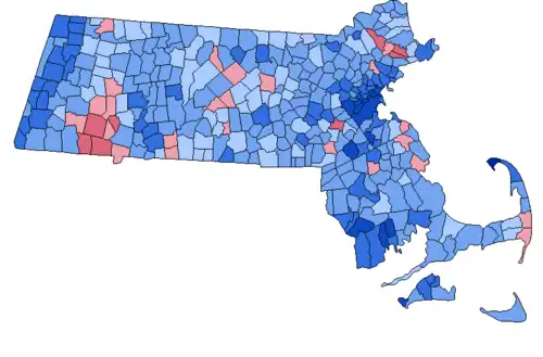 Bush became the first Republican ever to win the White House without carrying Barnstable County. As of 2024, this is the last time that a Democratic presidential nominee has failed to reach 60 percent of the vote in Massachusetts. This is also the last time that the towns of Ashby, Charlton, Douglas, East Bridgewater, Middleborough, Middleton, Lakeville, and North Brookfield voted Democratic in a presidential election and the last time that the towns of Chatham, Chesterfield, Orleans, Otis, and Rowe voted Republican, and the first time since 1944 where the city of Attleboro failed to vote for the winner of the presidential election.