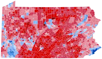 Pennsylvania was won by Vice President Al Gore by a 4.17% margin of victory. However, voter enthusiasm for both candidates was generally low throughout the campaign. Gore failed to capture Clinton's appeal in strongly Democratic regions such as Pittsburgh and Scranton, and thus carried these areas by a smaller number than his predecessor. However, opposition to George W. Bush was particularly strong in the suburban counties of Philadelphia; although these areas at the time were typically Republican leaning, they featured a strong culturally liberal bent, and thus Bush was unable to appeal to voters. Bush support was particularly strong in rural, central Pennsylvania, where the Texas Governor appealed to Evangelical voters and where Gore's connection to gun control policies was strongly rejected. Marginal wins in both of the state's metropolitan areas helped the Vice President to capture the state.[2] This was the first election since 1968 that the candidate who won Pennsylvania did not win the general election, and only the fourth time that has happened since 1916. As of the 2024 presidential election, this is the last election in which Greene County, Mercer County, and Lawrence County voted for the Democratic candidate.