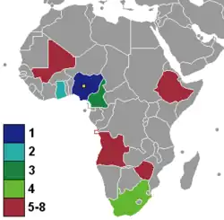 - ^ Bold indicates champions for that year, whiles Italic indicates hosts for that year.