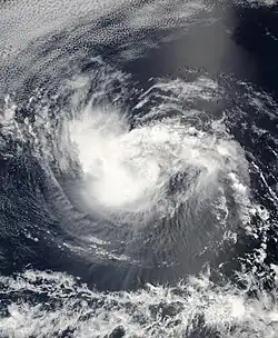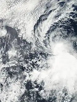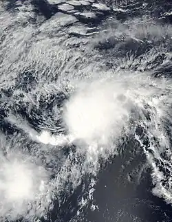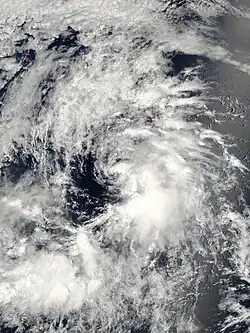 A tropical wave that crossed Central America organized and developed into a tropical depression on June 27.[17] Contrary to forecasts,[18] the depression did not strengthen further because of strong wind shear. By June 29, the depression had become a remnant low, which was observed as a swirl of clouds for a few more days before dissipating.[17]