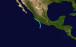 - ^ Lawrence (June 27, 2002). "Tropical Depression Three-E Discussion Number 1". National Hurricane Center. Archived from the original on October 21, 2008. Retrieved September 13, 2008.