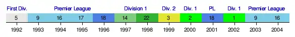 Prior to this season, the history of Manchester City's performance in the English football league hierarchy since the creation of the Premier League in 1992 is summarised by the following timeline chart – which commences with the last season (1991–92) of the old Football League First Division (from which the Premier League was formed).