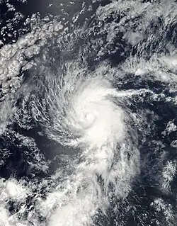 An organized region of convection within the Intertropical Convergence Zone developed into a tropical depression at 03:00 UTC on July 5 while located roughly 700 mi (1,100 km) south-southeast of Johnston Atoll, becoming the farthest-south-forming central Pacific tropical cyclone since Tropical Storm Hali (1992). Steered westward, the depression failed to intensify due to its quick forward motion despite a seemingly favorable environment, and it quickly dissipated at 00:00 UTC on July 6.[18]
