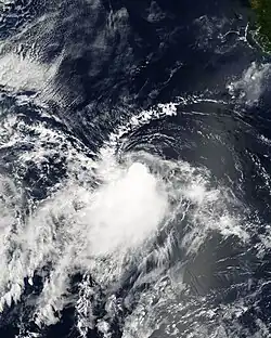 A westward-moving tropical wave from Africa crossed Central America into the eastern Pacific in late June, coalescing into a tropical depression at 12:00 UTC on July 2 well southwest of the southern tip of the Baja California Peninsula.[16] Steered westward by low-level flow, the depression failed to organize amid wind shear and cooler sea surface temperatures,[17] instead degenerating into a remnant low at 00:00 UTC on July 4. The post-tropical cyclone dissipated a day later.[16]