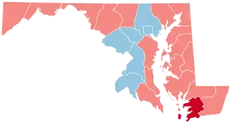 Wicomico | 15,137 | 40.36% | 21,998 | 58.66% | 368 | 0.98% | -6,861 | -18.30% | 37,503 |