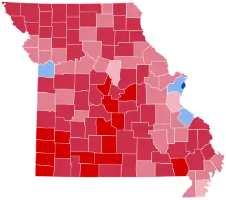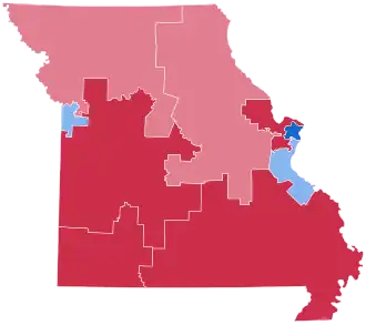 Missouri was won by incumbent President George W. Bush by a 7.20% margin of victory. Prior to the election, 10 of 12 news organizations considered this a state Bush would win, or otherwise considered as a red state. He also won a wide majority of the counties and congressional districts in the state.