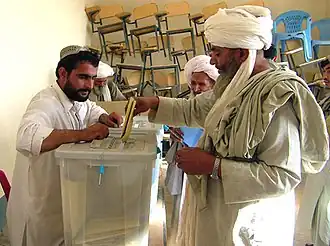 During the 2009 Afghan elections, former U.S. Ambassador to Afghanistan Ronald E. Neumann recalled that the "indelible" ink used in the 2005 election to prevent people from voting more than once had turned out to be washable after all.[2] The same problem had also occurred in the 2004 presidential elections, and was repeated again in the 2009 elections.[3]