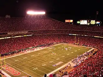 - ^ The crowd of 80,866 at the Thanksgiving game would go on to be the second largest crowd to ever witness a game at Arrowhead Stadium as well as to see their team improve to 7–4. The largest crowd to see a game in Arrowhead Stadium is 82,094 (vs. Oakland Raiders; November 4, 1972)