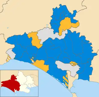 ![]() Map showing the results of the 2007 West Dorset District Council elections. | |||||||||||||||||||||||||||||||||||||