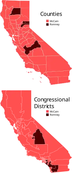 Obama carried 42 of 53 congressional districts in California, including eight districts held by Republicans.[36]