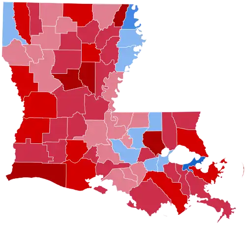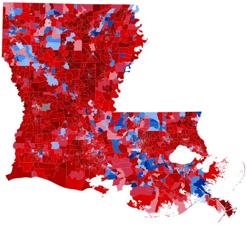 In this election, Louisiana voted 25.9% to the right of the nation at-large, or a 13.85 percent bigger differential than in 2004.[1]
