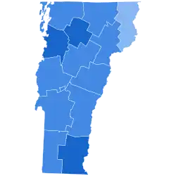 Obama carried every county by more than 60% of the vote with the exception of Essex County, which he won with 56%. He also broke 70% in 3 counties. A very liberal Northeastern state, Vermont was the second most Democratic state in the nation, weighing in as a whopping 30% more Democratic than the national average in the 2008 election. Obama's landslide win in Vermont outperformed Lyndon Johnson's 1964 Democratic landslide in the state, making the results of 2008 the strongest Democratic victory in Vermont's history.