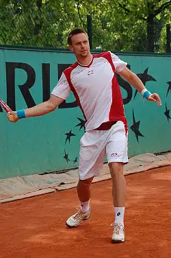 Nikolay Davydenko won his first tournament at the International German Open defeating Paul-Henri Mathieu.[43] The following week he won the ATP Studena Croatia Open Umag defeating Juan Carlos Ferrero.[44] As well as the inaugural Proton Malaysian Open defeating Fernando Verdasco.[45] Davydenko then claimed his 3rd Masters title at the Shanghai ATP Masters 1000 upsetting Rafael Nadal after defeating Novak Djokovic.[46] He well as making the quarterfinals of French Open losing to Söderling.[47] This is his fifth appearance with an 8–7 record. His best performance came last year as he reached the final losing to Novak Djokovic.