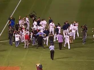 The Twins ended the 162-game regular season tied with the Detroit Tigers, necessitating a one-game playoff. This made the Twins the first major league team ever to play in a tie-breaker two years in a row (they lost one to the Chicago White Sox in 2008). The game took place on Tuesday, October 6 at the Metrodome. The Twins won the game, 6–5, in 12 innings on Alexi Casilla's game-winning hit scoring Carlos Gómez.[8]