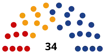 34 seats in the Parliament 18 seats needed for a majority | |||||||||||||||||||||||||||||