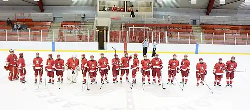 October 23: The Harvard women's hockey team took a 2-1 lead into the third period but allowed a goal for a 2-2 tie at Bright Hockey Center. McGill took advantage of a five-on-three situation early in the first period as Cathy Chartrand took a feed from Gillian Ferrari and beat Bellamy for a 1-0 lead. Harvard had several opportunities on the power play in the 17th minute, but could not score on McGill netminder Andrea Wickman. With less than a minute to play in the game, McGill pulled its goaltender. With an extra skater, Ann-Sophie Bettez and Leslie Oles almost scored. In the end, Katia Clement-Hydra converted from close range to tie the score at 2-2. The overtime stanza did not result in a game-winning goal.[2]