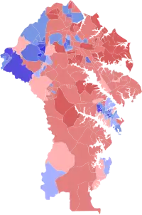 Kamenetz: 50–60% 60–70% 70–80% 80–90% Kittleman: 50–60% 60–70% Tie: 50% |