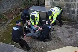 The decision made by the police to forcibly remove some students from the premises during the eviction[35] attracted criticism, after some involved were injured.[38] Around 100 members of staff/students openly criticised the eviction.[39] Some academics at the university called for an independent inquiry into the eviction and the immediate resignation of the university's senior management group.[40] Tommy Gore, president of the SRC, condemned the police presence on campus.[41] Strathclyde Police have described calls that the police presence was disproportionate as "ridiculous".[36] Patrick Harvie, member of the Scottish Parliament condemned the actions of the university and Strathclyde Police, and Scottish Green Party Councillor Martha Wardrop said the police's role "served to inflame a volatile situation".[42]
